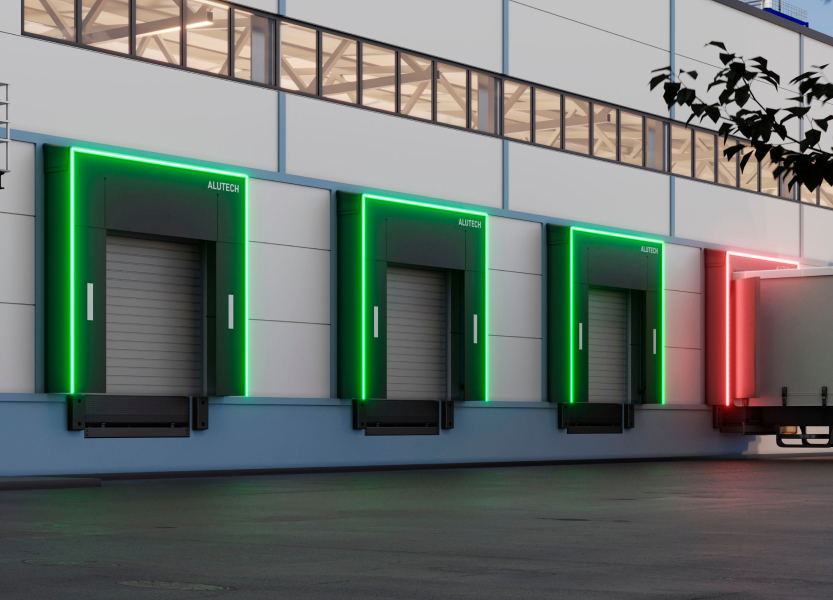 Цветовые сигналы LED-ленты информируют водителя о стадии погрузки-разгрузки и минимизируют риск преждевременного отката транспортного средства.